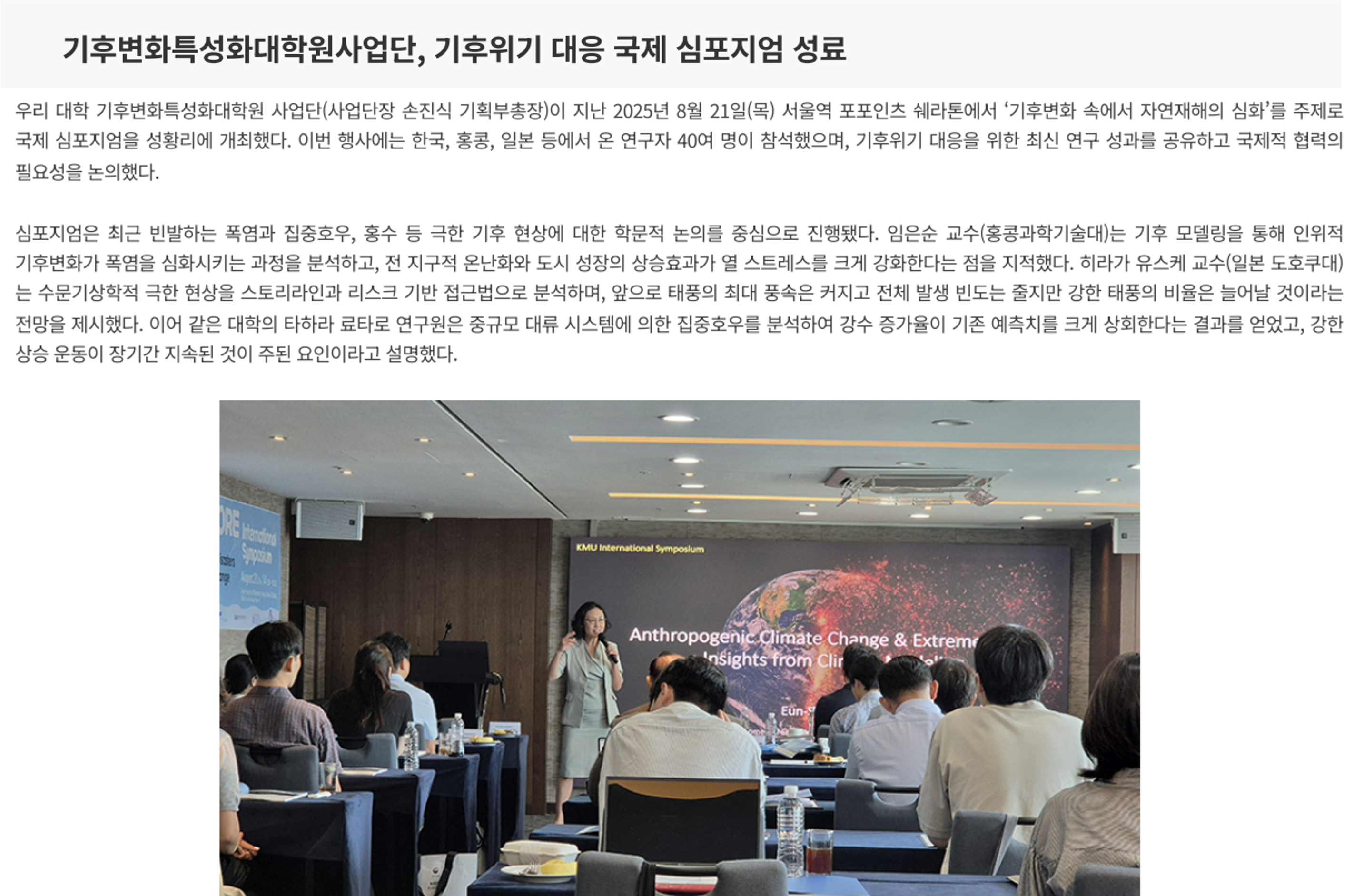 Prof. Eun-Soon Im was invited to give a talk at the international symposium on climate change hosted by Kookmin University.
